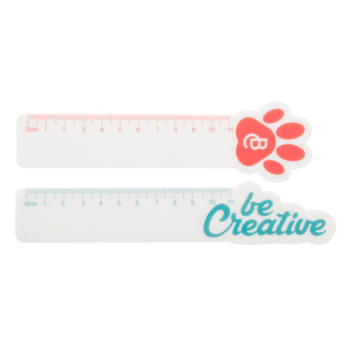 Plastové pravítko na zakázku, 11 cm, ve vlastním tvaru na konci pravítka (max. rozměr: 50x50 mm). Cena zahrnuje 1 barevný potisk, nezahrnuje tiskovou přípravu. Min. mn.: 100 ks.