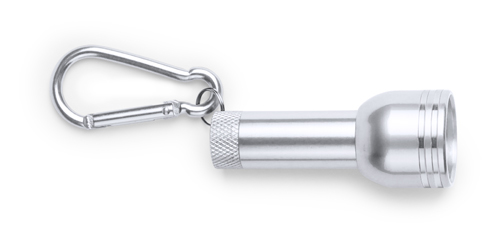 Hliníková baterka s 6 LED diodami a karabinkou. Dodáváno s knoflíkovou baterií.