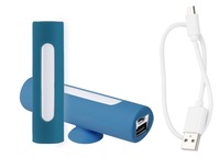 Plastová USB power banka s 2200 mAh baterií a gumovou přísavkou. Dodáváno vč. USB mikro nabíjecího kabelu.