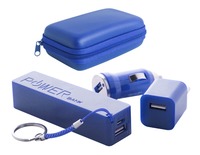 Sada USB nabíječky  (max. výkon 2100 mA) a power banky s 2600 mAh baterií v pouzdru na zip. Dodáváno vč. USB mikro nabíjecího kabelu.
