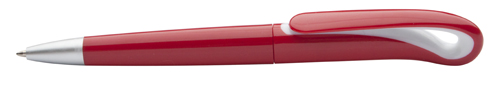 Trendy plastové kuličkové pero s leštěným barevným povrchem a stříbrnou špičkou. S modrou náplní.